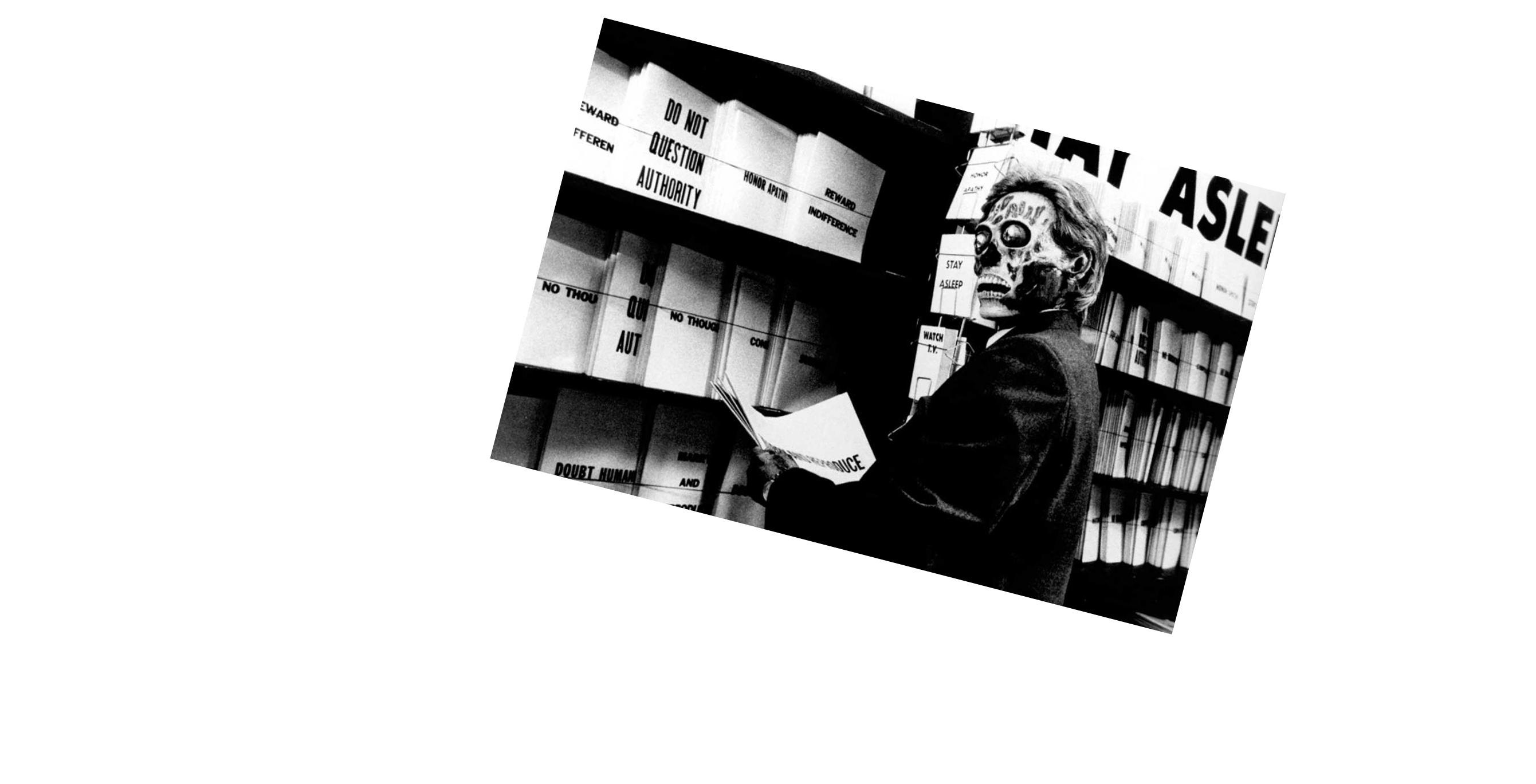 “They Live" has gone on to claim a cult following and earned a reputation for its political satire, social commentary, philosophical and technological forecasting, and visual aesthetics. Areas in which the film has both inspired and exerted its distinct influences such as Jenny's Holzer or Barbara Kruger.